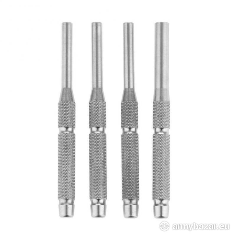 Opis: Komplet 4 szt. WYBIJAKÓW do broni. Wykonane z wytrzymałej i odpornej STALI NIERDZEWNEJ, ryflowane dla lepszego uchwytu.Przeznaczone do wybijanie różnych pinów itd. W SKŁAD ZESTAWU WCHODZI: 3 WYBJAKI 4 mm o różnych średnicach wewnętrznych 1 WYBIJAK 5 mm Długość: 70 mm
