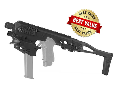 Opis: CAA Micro Conversion Kit to lekka i wytrzymała platforma dla pistoletów Glock. Posiada lufową osłonę z aluminium i obudowę z polimeru. Jest to najszybszy zestaw karabinka / konwersji na rynku. Poprawia celność do 180 metrów. Najważniejsze cechy: - Nie wymaga rozkładania ani modyfikacji broni - wystarczy umieścić pistolet w zestawie, zamknąć go i zacząć strzelać! - Wyposażony w stabilizator umożliwiający strzelanie w złożonym i zamkniętym stanowisku. - Łatwe i szybkie umieszczanie i wyjmowanie pistoletu. - Wyposażony w ulepszony uchwyt magazynka, który działa z zatrzaskiem i przyciskiem zwalniania magazynka. Montaż zajmuje tylko kilka sekund! Nie wymaga żadnych modyfikacji bron