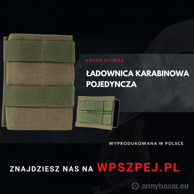 Opis: Ładownica przeznaczona na magazynki do karabinków na nabój 5,56 mm x 45 (223 Rem). System mocowania ładownicy oparty jest na przeplatanych taśmach (system MOLLE/PALS)