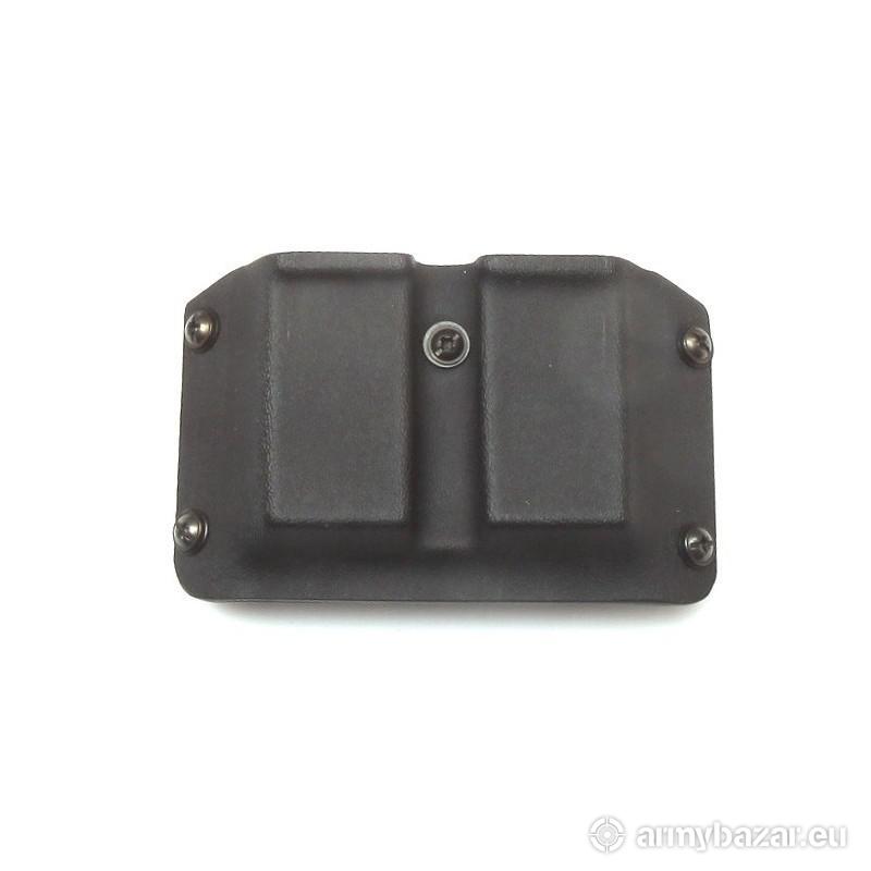Opis: Uniwersalna kydexowa ładownica na pasek na dwa magazynki dwurzędowe do pistoletu. Przeznaczona do magazynków Glock, HK, CZ, Sig Sauer, XDM, itp.