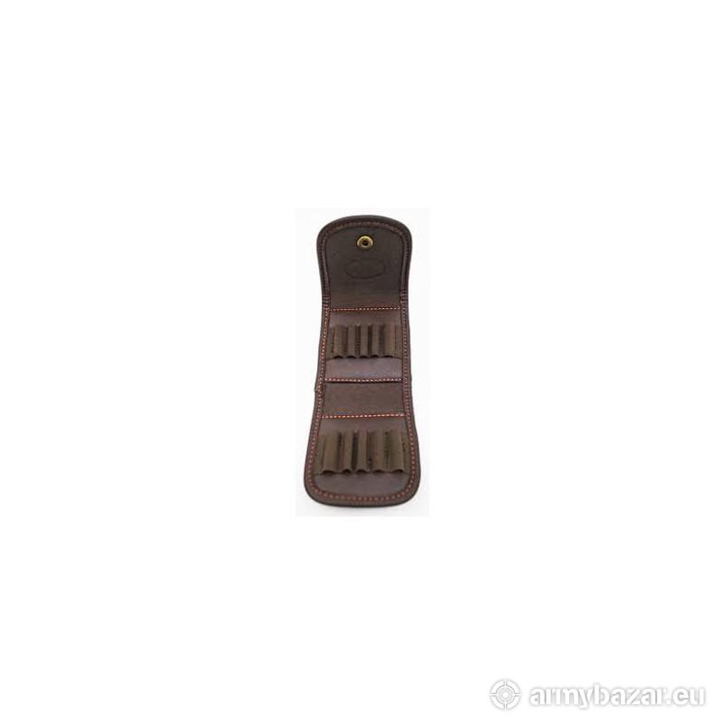 Opis: Ładownica na 10 szt. amunicji kulowej. Zapinana na zatrzask. Wykonana z materiału z elementami skóry. Elastyczny ściągacz dostosowuje się do pocisków większości kalibrów. Wymiary: 31 cm x 24 cm x 10 cm