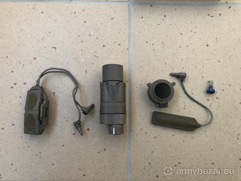 Opis: Na sprzedaż bardzo trudno dostępna latarka INSIGHT M3X używana przez amerykański SOCOM w ramach programu SOPMOD Block 2. Latarka używana, 100% sprawna. W skład sprzedawanego zestawu wchodzą: - latarka - włącznik żelowy - filtr IR - dodatkowy żarnik - podwójny włącznik żelowy ( pęknięta obudowa, w pełni sprawny)