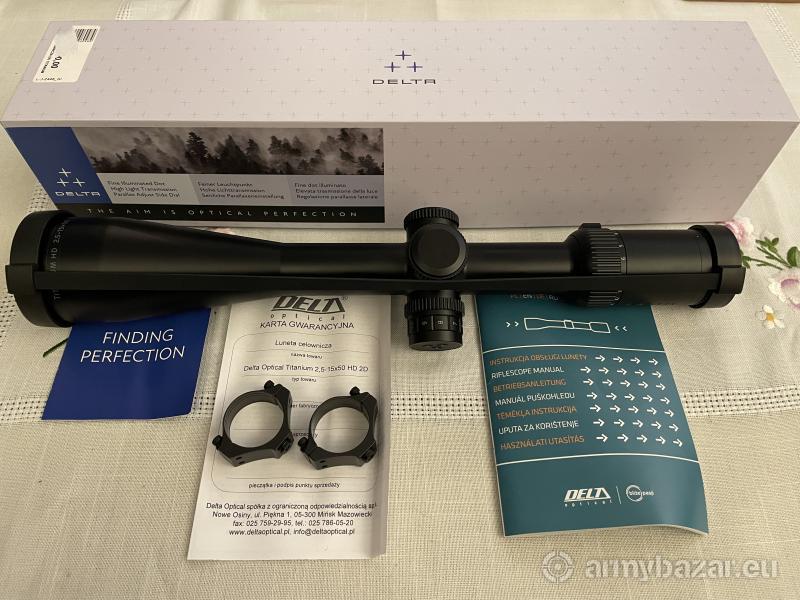 Opis: Sprzedam lunetę DELTA Titanium HD 2.5-15x50 2D (DO-2448). Unikalna siatka 2D posiada dwa dodatkowe punkty w linii horyzontalnej wyskalowane przy powiększeniu 8x. Jest ona szczególnie polecana do konkurencji dzik w przebiegu.