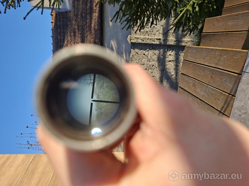 Opis: Luneta PU do mosina, produkcja zakładu nr 357 NKV (Leningrad/Omsk) z roku 1943. Bębny sprawne, kompletna, obraz jest nieco bardziej żółty niż na żywo.