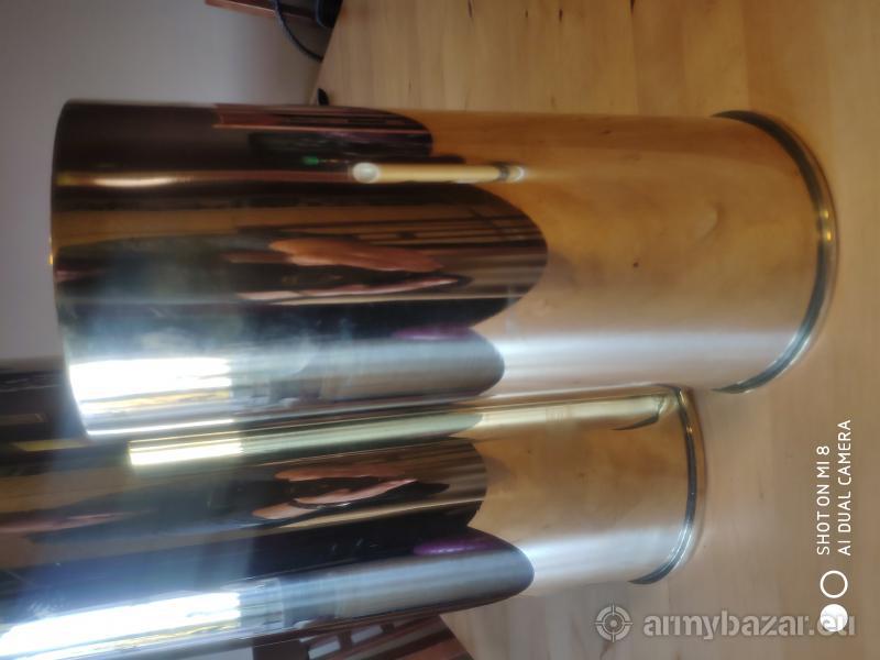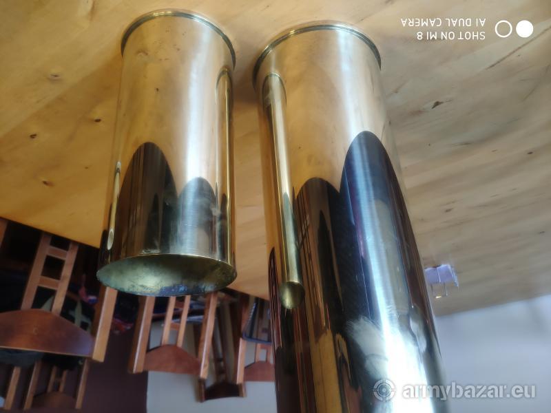 Opis: Witam Posiadam na sprzedaż łuski mosiężne idealnie nadające się na puchar, do kolekcji lub ozdobę (wazon) w mieszkaniu. Wymiar większej . wysokość 550mm średnica wewnętrzna 152mm cena 450zł . Wymiar mniejszej . Wysokość 285mm średnica wewnętrzna 125mm cena 250zł Przy zakupie obu sztuk atrakcyjny rabat. Więcej informacji można uzyskać pod numerem telefonu 504116307.