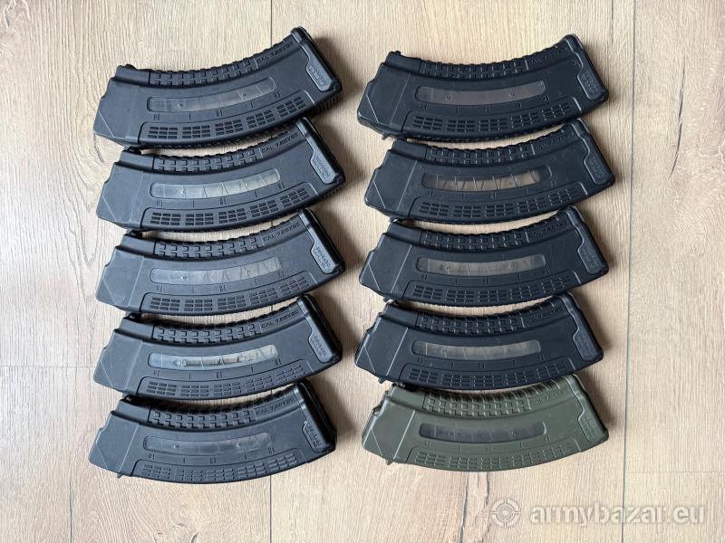 Opis: Sprzedam magazynki 30 nabojowe FAB Defense Ultimag do karabinków kal. 7.62x39 typu AK47, AKM, AKMS itd. Moim zdaniem, najlepsze magazynki do AK na rynku. Miękka sprężyna pozwala szybki je ładować, ale podaje doskonale. Zacięć praktycznie brak. Materiał bardzo wytrzymały. Dobrze zapinają się do kbk-a i świetnie leżą w dłoni i ładownicach. Bardzo polecam. Magazynki mało używane w świetnym stanie technicznym. Posiadam 10 szt. w tym jeden zielony i 9 czarnych. Cena aukcji dotyczy jednej sztuki. Przy komplecie, możliwość negocjacji ceny. Zapraszam!