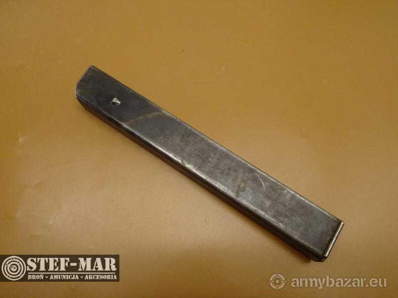 Opis: Magazynek do pistoletu maszynowego Beretta M38/44. Oryginalny magazynek pasujący do włoskiego pistoletu maszynowego Beretta M12 Kaliber 9x19mm Parabellum/Luger. 40-nabojowy Stan używany, widoczny na poglądowych zdjęciach, zakonserwowane smarem Cena dotyczy jednej sztuki Numer katalogowy X848.