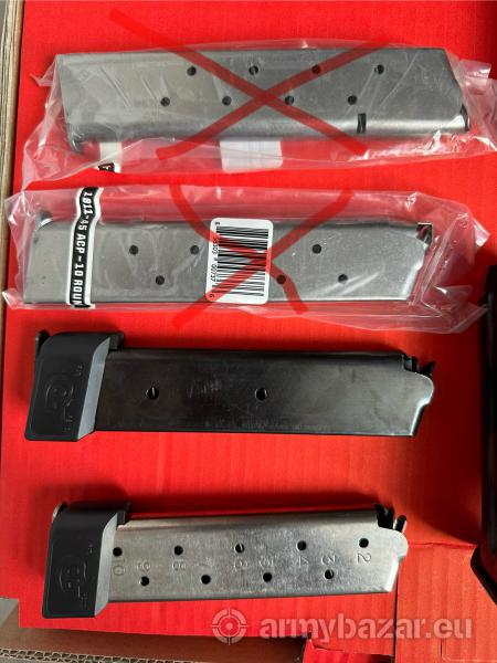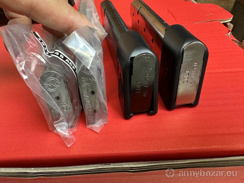 Opis: Sprzedam magazynki 10 nabojowe do Colt—ów 1911. Dwa nowe zamienniki - sprzedane i 2 oryginalne po 400