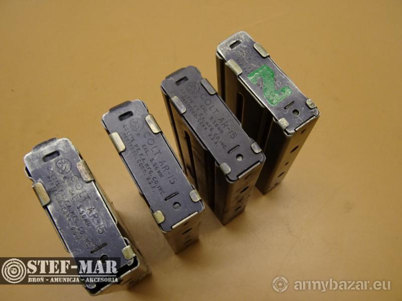 Opis: Oryginalny magazynek do karabinka M16 produkcji Colt Oryginalny amerykański 20- nabojowy magazynek do karabinów i karabinków COLT AR-15 , M16 Stan używany widoczny na zdjęciach w pełni sprawne, denka mogą posiadać zabarwienia czerwoną farbą, lub inne oznaczenia Cena dotyczy jednej sztuki Numer katalogowy X2078