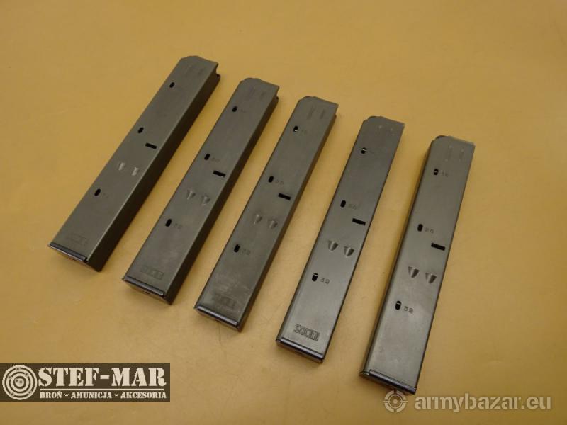 Opis: Magazynek do pistoletu maszynowego UZI. Magazynek długi - 32 nabojowy. 9x19 mm. Stan nowy magazynowy, , mogą posiadać delikatne zarysowania, otarcia które powstały w wyniku magazynowania Cena dotyczy jednej sztuki Numer katalogowy X1767