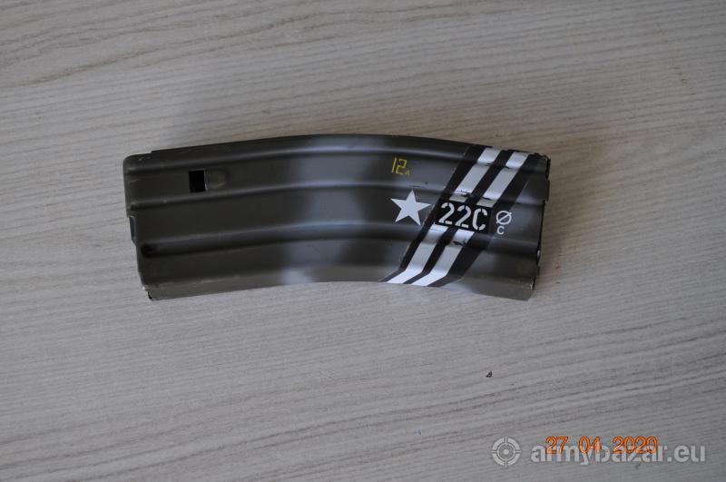Opis: Magazynek do AR-15 M4 pomalowany jak skrzydło samolotu w operacji Overlord 1944. Używany sprawny Magazynek na 30 nabojów.