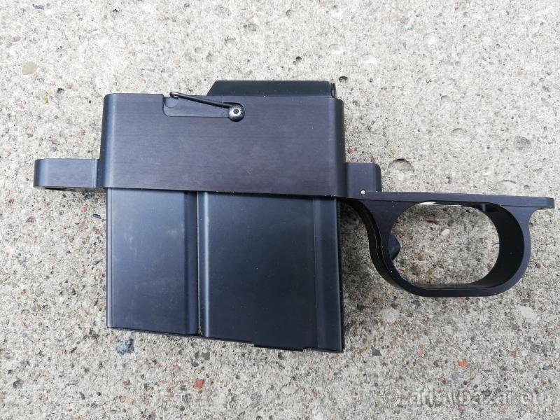 Opis: Magazynek metalowy, jednorzędowy, 5 kulek. Obsada Alu, szeroki kabłąk spustowy.