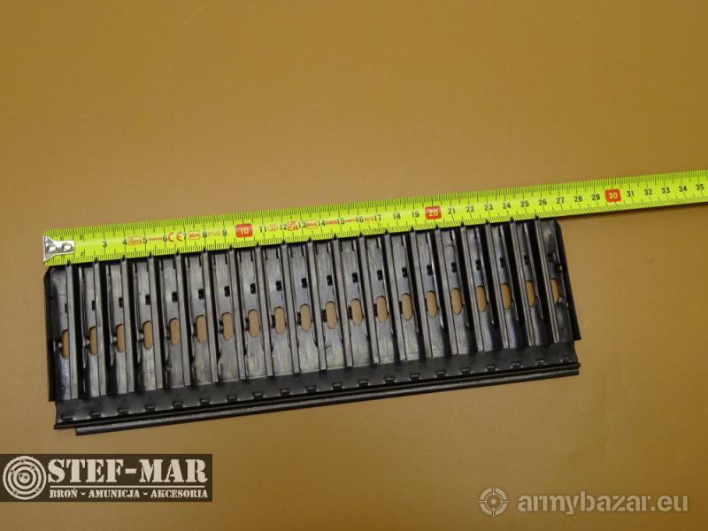 Opis: Oryginalny magazynk / podajnik / taśma do karabinu Breda model 37 , kaliber 8 mm Breda Magazynek/podajnik do karabinu maszynowy zaprojektowany w 1937 w zakładach Breda i używany w czasie II światowej przez wojska włoskie. Fajny eksponat dla kolekcjionerów do rekonstrukcji. Magazynek metalowy, 20- nabojowy, Stan nowy nieużywany Cena dotyczy jednej sztuki Numer katalogowy X2265