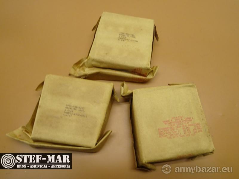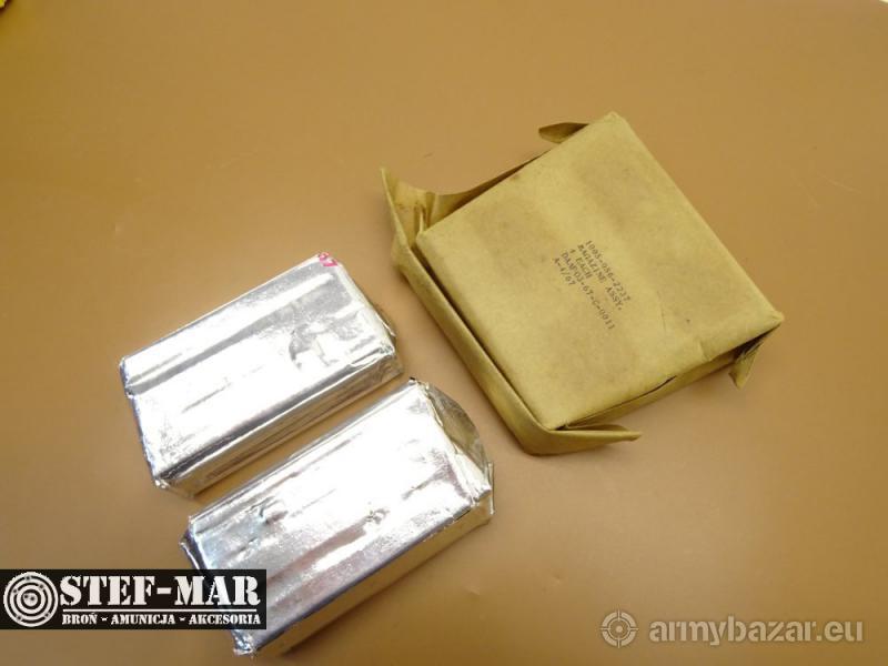 Opis: Oryginalne 4-magazynki do karabinka M16 produkcji Colt Magazynki M16 w oryginalnym opakowaniu w których były wysyłane do wojska Najprawdopodobniej w tych opakowaniach magazynki również trafiały do walk w Wietnamie Stan nowy magazynowy, papier może posiadać przybrudzenia, plamy z racji wieloletniego magazynowania Aukcja dotyczy zestawu 4-magazynków w oryginalnym opakowaniu Cena dotyczy jednego zestawu 4 sztuk zapakowanych w papier. Numer katalogowy X2011