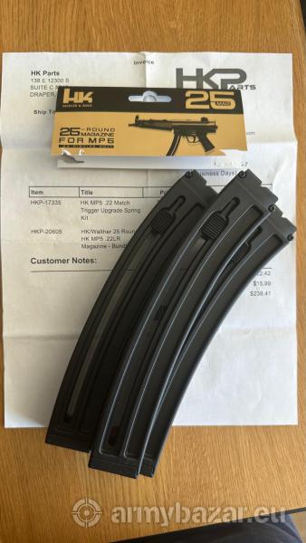 Opis: posiadam na sprzedaz 3 magazynki do MP5 .22LR Kupione w USA jako zestaw wiec sprzedaje oddzielnie https://hkparts.net/all-parts/hk-walther-25-round-hk-mp5-22lr-magazine-bundle-of-5/ Sprowadzenie ich z USA to naprawde droga przez meke i mega wysokie koszty stad taka cena. Cena za sztuke 200