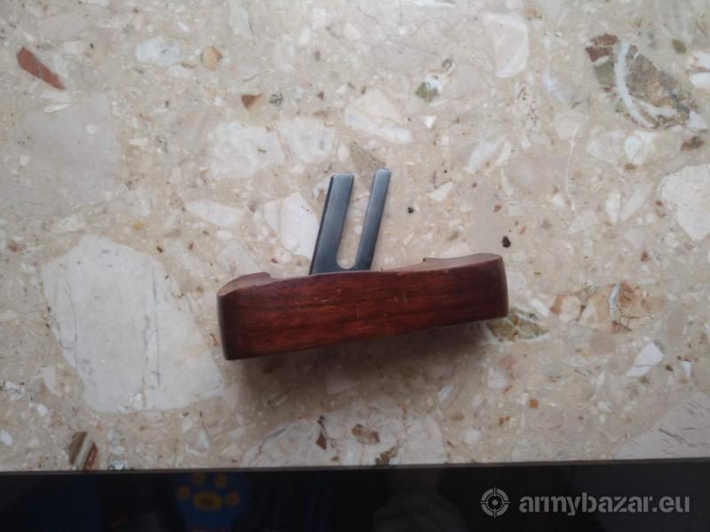 Opis: Oryginalna, drewniana półka rękojeści do pistoletu Margolin. Egzemplarz widoczny na zdjęciach, w bardzo dobrym stanie. Oczywiście możliwa wysyłka, ale do ceny trzeba doliczyć koszt wysyłki (około 15 zł). Kontakt: jakubozea@o2.pl, tel: 791 929 767