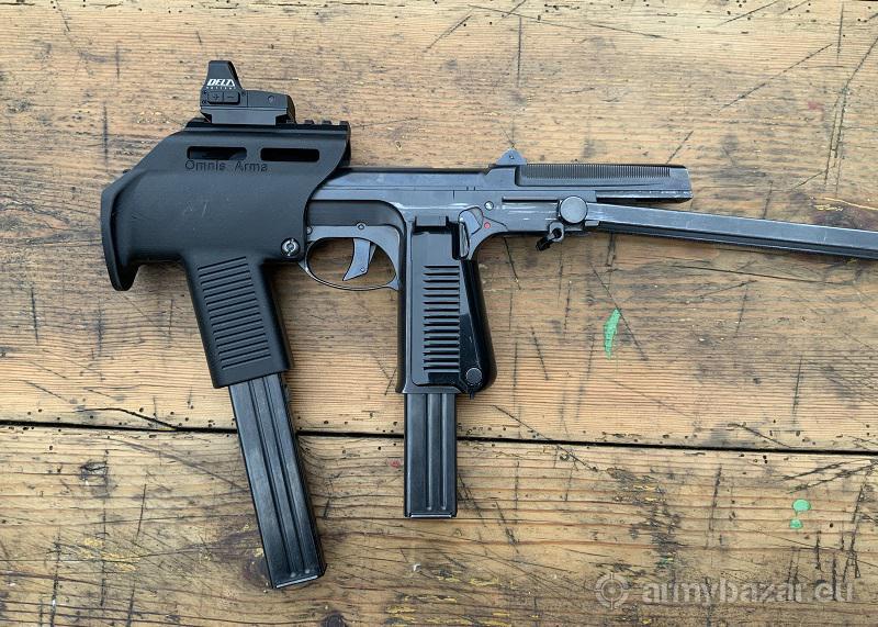 Opis: Nowa generacja konwersji: modernizacja pistoletu maszynowego PM-63 Rak ze zintegrowanym montażem pod optykę, chwytem skośnym i nakładką na stopkę kolby (cena za komplet). Poprawiona estetyka i wytrzymałość, dodana możliwość przechowania magazynka w chwycie przednim. Dostępne warianty z chwytem, szyną dolną i maksymalnie obniżona. Zamów na https://omnisarma.com/c/konwersje