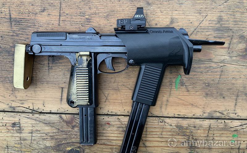 Opis: Nowa generacja konwersji: jedyna oryginalna modernizacja pistoletu maszynowego PM-63 Rak ze zintegrowanym montażem pod optykę, chwytem skośnym i nakładką na stopkę kolby (cena za komplet). Poprawiona estetyka i wytrzymałość, dodana możliwość przechowania magazynka w chwycie przednim. Dostępne warianty z chwytem, szyną dolną i maksymalnie obniżona. Zamów na https://omnisarma.com/c/konwersje