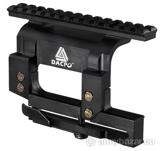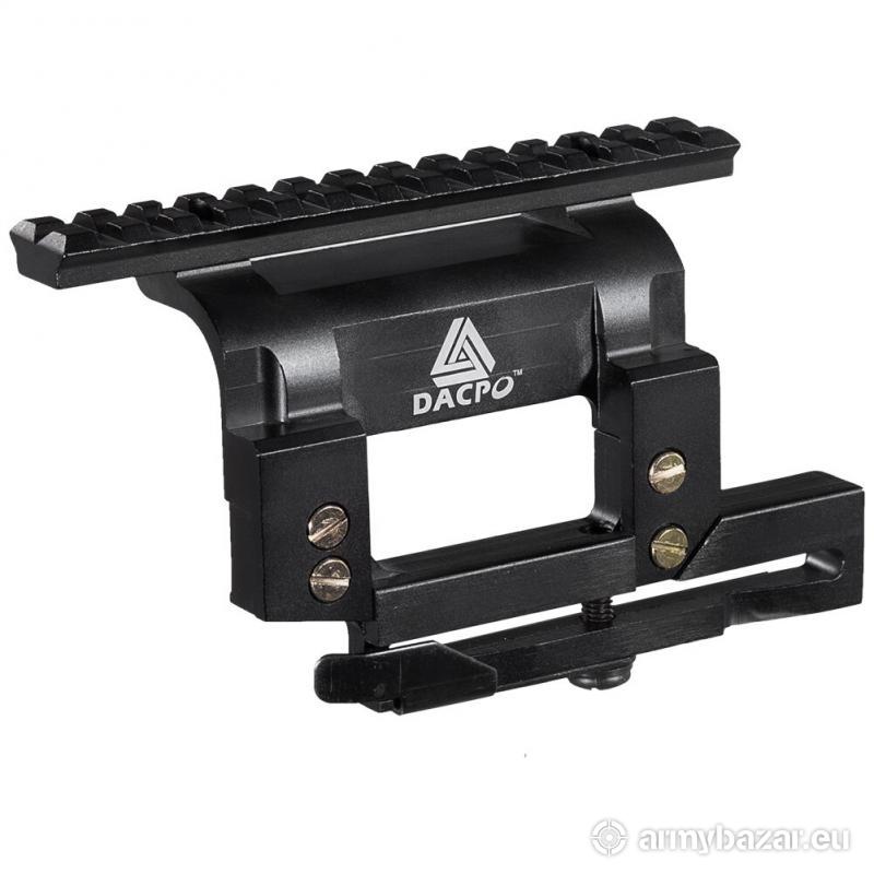 Opis: Sprzedam FABRYCZNIE NOWY montaż boczny Zenit-Belomo do AK / AKM / Sajga i innych na jaskółkę z szyną picatinny. Wysokość 52 mm. Długość szyny - 140 mm. Wykonana z aluminium lotniczego w kolorze czarnym. Odległość pomiędzy górną krawędzią bocznej szyny "jaskółczy ogon" i dolną częścią montażu nad komorą - 52 mm. Montaż na dole ma regulację docisku do konkretnej szyny. Waga: 220 g