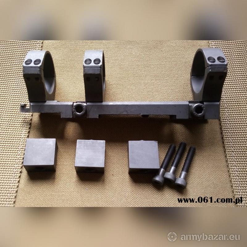 Opis: Do sprzedania oryginalny montaż optyki do karabinów SAKO TRG 41,21 i 42,22. W tej chwili SAKO na rynek cywilny zaprzestało sprzedaży tego modelu - dostępne są tylko modele Optilock. Ten jest naprawdę pancerny - zaprojektowany dla wojska żeby wytrzymywał trudy walki. Polecam zwłaszcza strzelcom taktyczno-długodystansowym ! Także dla klasy "magnum". Trzy pierścieniowy - możliwość zamontowania pierścieni w różnych konfiguracjach w zależności od posiadanej optyki. Podstawa posiada pięć otworów gdzie można dokręcić pierścień, daje to spore pole manewru. Dla lunet o tubusie 30 mm
