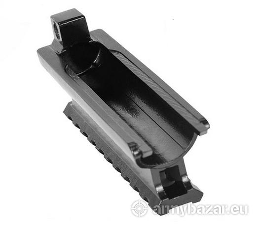 Opis: Szyna PICATINNY 20-22 mm zintegrowana z pokrywą komory zamkowej do karabinu SKS Simonowa. Montowana w miejscu pokrywy komory zamkowej. Szybki i stabilny (trzymający zero) sposób montażu. IDEALNA baza pod lunetę, kolimator, noktowizor, itp. Wykonanie: STAL Długość: 112 mm Waga: 255 g.