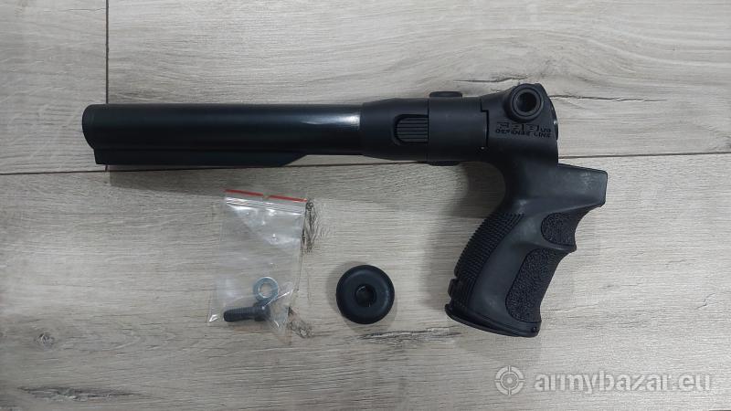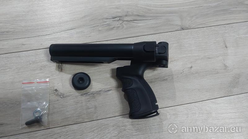 Opis: Witam Do sprzedania nowy zestaw do pasujący do wszystkich mossbergów w zestawie chwyt z zaślepką którą można zastosować po demontażu rowadnicy, składaną na prawą stronę 6 pozycyjna prowadnica w standardzie ar15 niestety brak kolby