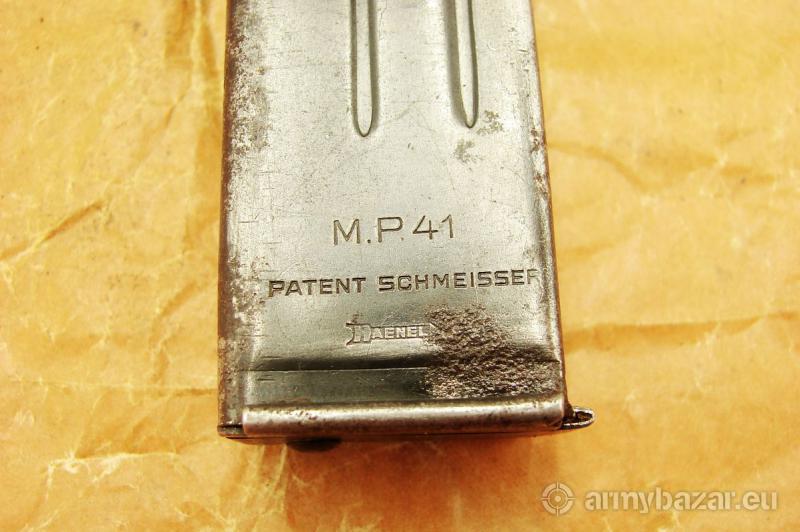 Opis: Przedmiotem ogłoszenia jest oryginalny drugowojenny magazynek do niemieckiech komercyjnych pistoletów maszynowych MP41, magazynek identyczny z magazynkami do MP38 i MP40, producent HAENEL, waffenamt orzeł na 37. Stan widoczny na zdjęciach, sprzedaję prezentowany egzemplarz. Cena 750 zł, wysłka 18 zł paczkomat inPost lub 15 zł kurierem pocztex48. Nie wysyłam za pobraniem.