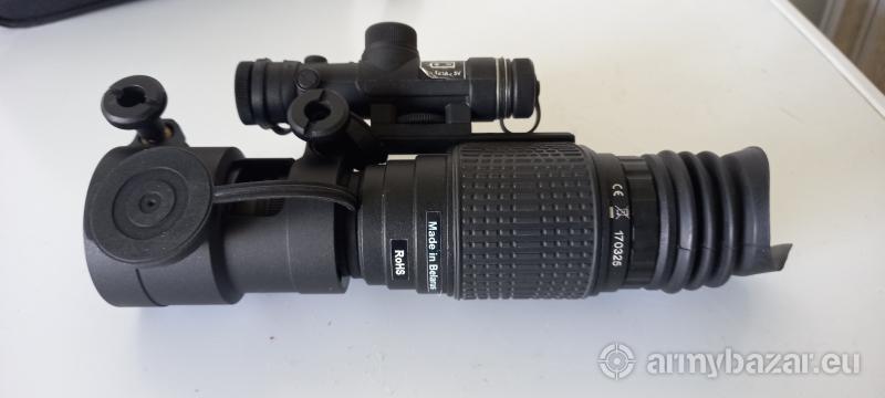 Opis: Mam do sprzedania dwa urządzenia - nasadkę noktowizyjną Dipol D125 wraz z Iluminatorem Dipol L3 (pokrowce). Można go używać jako obserwacyjny lub nakładać na lunetę (adaptery do różnych typów lunet w zestawie) czy z maską na głowie. Sprzęt jest w pełni sprawny i praktycznie nieużywany (tylko raz miałem go w terenie). Zakup był robiony w maju 2019 (Łódź -Siwiaszczyk).
