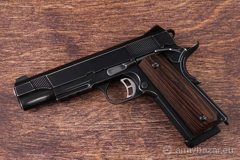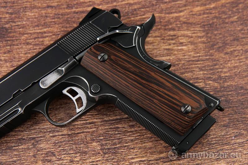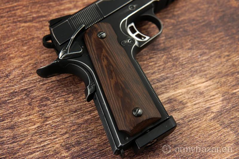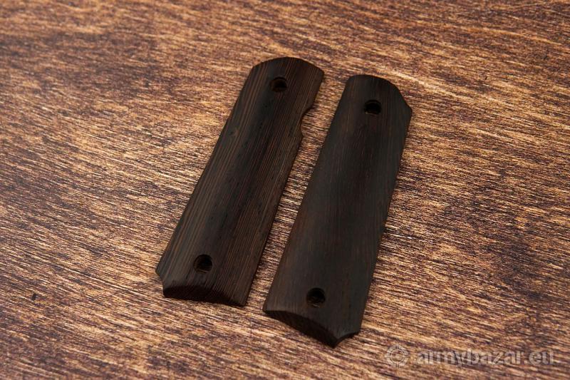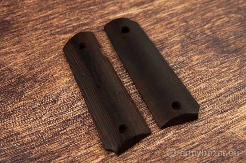 Opis: Produkt oryginalny, do broni palnej. Wersja gładka, bez moletowania - ciemne, ładnie usłojone drewno. Okładziny wykonane maszynowo i wykończone ręcznie, świetny, powtarzalny efekt wizualny. Okładziny są NOWE, DREWNIANE. Olejowane i woskowane, wykonane z najwyższą jakością. Każda para okładzin jest niepowtarzalna, różni się słojami, kolorem, wzorem. Pasują również do kopii Colta/replik ASG/wiatrówek. Doskonale wyglądają na klasycznych ciemnych 1911, jak i na srebrnych czy taktycznych wersjach. Jeśli chcesz, by Twoja broń odróżniała się na tle innych - to coś dla Ciebie. Cena - 119 zł/komplet. Odbiór w Poznaniu lub wysyłka paczkomatem za 11 zł, kurierem za 17 zł.