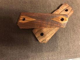 Opis: Praktycznie nowe okładziny drewniane do BUL 1911 FS - Classic Wood. Klasyczne, pełnowymiarowe drewniane chwyty pistoletów 1911 zapewniają dobrą przyczepność i klasyczny wygląd. Pasuje do wszystkich modeli 1911. Kolor Classic Wood. Info ze strony dystrybutora: https://strefacelu.pl/okladziny-drewniane-do-bul-1911-fs-classic-wood-30101.html