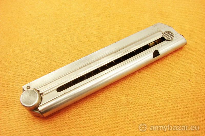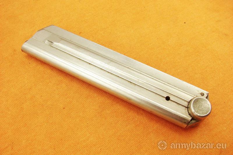 Opis: Przedmiotem ogłoszenia jest oryginalny niemiecki 8-mio nabojowy magazynek do pistoletów P08 PARABELLUM LUGER produkcji HAENEL. Magazynek sygnowany HAENEL SCHMEISSER, frezowany ale jeszcze ze spiralną spreżyną, rzadkość. Stan widoczny na zdjęciach, sprzedaję prezentowany egzemplarz. (BH-15) Cena 1750 zł, wysłka 18 zł paczkomat inPost lub 15 zł kurierem pocztex48. Nie wysyłam za pobraniem.