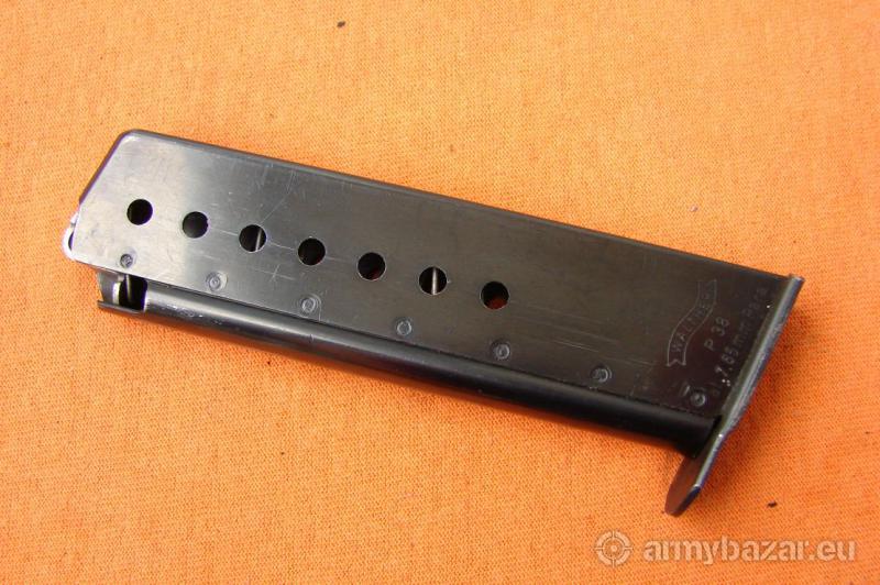 Opis: Przedmiotem ogłoszenia jest niemiecki 8-mio nabojowy magazynek do pistoletów P38 produkcji WALTHER z ULM w ciekawym kal 7,65x21 mm Parabellum 30 Luger. Stan widoczny na zdjęciach, sprzedaję prezentowany egzemplarz. (BI-64) Cena 525 zł, wysłka 18 zł paczkomat inPost lub 15 zł kurierem pocztex48. Nie wysyłam za pobraniem.