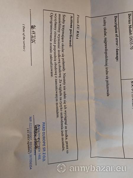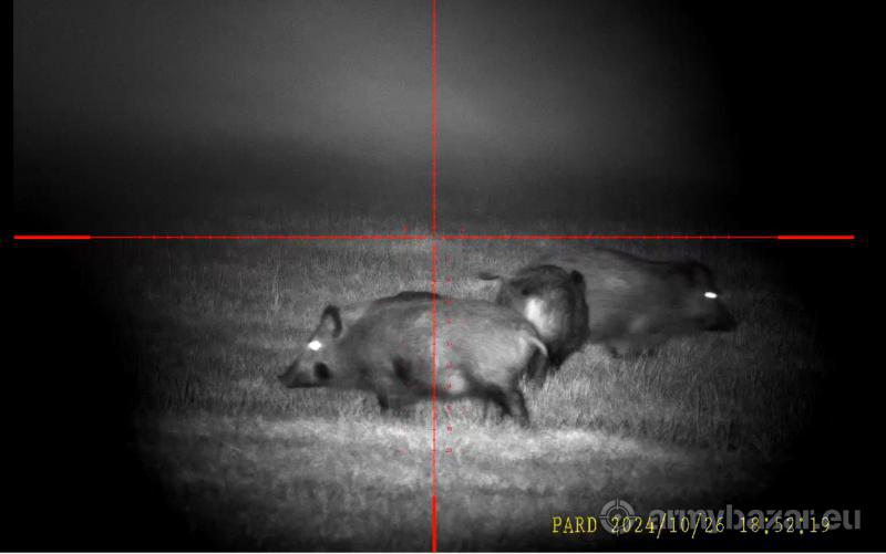 Opis: Powiększenie: 5,6–11x Obiektyw: 70 mm – jasny obraz w słabym świetle Waga: ~730 g OLED Full HD – kontrastowy obraz Dodaję mocny doświetlacz 850 nm (VCSEL) na RIS z regulacją mocy/skupienia (zasięg jak Noxar/X-Hog). W komplecie obejmy (oryg. Parda) i montaż. Wersja bez dalmierza i fabrycznego IR: wygląda jak klasyczna luneta, siatka MIL do szacowania dystansu, zewnętrzny IR dużo mocniejszy (bez limitów UE). Po gwarancji, po naprawie tubusa w serwisie PARD (Warszawa, Rzymowskiego 31). Zadbany, min. ślady użycia w tym otarcie na pokrętle (zdjęcia). Cena bez obejm i wózka Łuszczka z foto. Sprawny, mogę wysłać filmy. Bardzo zadowolony – przesiadam się na Pard 4K. Pytania mile widziane!