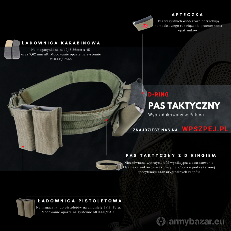 Opis: UWAGA CENA DOTYCZY SAMEGO PASA. Nasze pasy AR są wyborem nr 1 wśród elitarnych jednostek specjalnych oraz prestiżowych służb mundurowych w Polsce i na świecie. Rozwijane i testowane w boju udowodniły, że sprawdza się w każdych warunkach. Jako firma jesteśmy nie tylko sprzedawcą, ale również użytkownikami tego sprzętu i wiemy doskonale że pas taktyczny jest elementem wspierającym przeżycie na polu walki. Nasz Polski producent przykłada ogromną wagę do detali by dostarczyć najlepszy produkt, który nie zawiedzie w sytuacji krytycznej na polu walki. Jesteśmy dumni z tego iż Nasze Pasy nie zawiodły żadnego użytkownika, niezależnie czy działał w strefie wojennej czy w komercyjnym treningu
