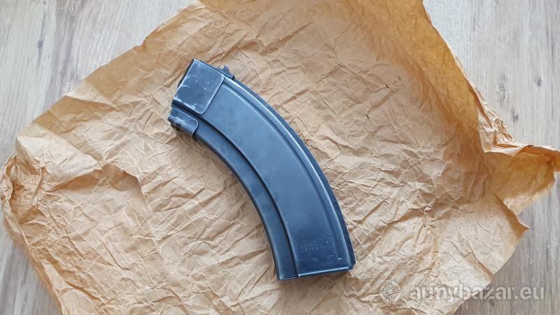 Opis: Witam Na sprzedaż trafia nie lada fant, bo pierwszy typ magazynka do AK. Produkowane je tylko przez pare lat w ZSRR, przez co dostępność do nich poza Rosją byla bardzo niska. Biorąc pod uwagę obecną sytuację może ich już nie być w sprzedaży. Magazynek w stanie bardzo dobrym- oryginalna oksyda nawet nie jest porysowana. Pięknie widoczny numer jednostkowy, wszelkie stemple odbioru oraz logo fabryki Izamsh na grzbiecie. Jedyny minus to podajnik. Wydaje mi się ze był wgnieciony i naprawiany jednak z tego co widze-działa jak należy. Sprężyną wypycha go do końca magazynka. Także powinien normalnie podawać naboje. Sprężyną w stanie bardzo dobrym i nie uszkodzona.