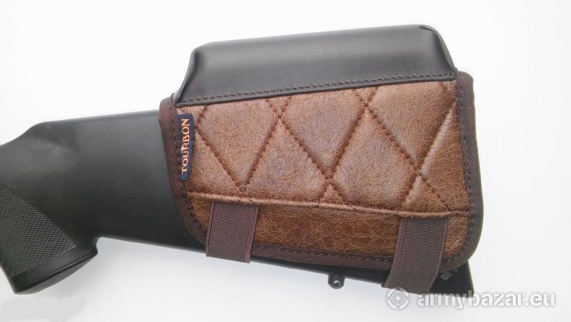 Opis: Poduszka policzkowa VINTAGE, baka na kolbę do broni strzeleckiej, wiatrówki, itp. Wykonane z pikowanego materiału oraz skóry syntetycznej w kolorze brązowym. IDEALNA do celowania przy pomocy lunet oraz celowników optycznych. Podnosi linię celowania o 3cm. Łatwy i szybki montaż na napy. ROZMIAR uniwersalny, regulowany. Środek ogumowany zapewniający dobrą przyczepność do kolby, nie przesuwa się po niej. Z prawej strony uchwyt na 8 nabojów. WERSJA DLA STRZELCÓW PRAWORĘCZNYCH. DANE TECHNICZNE: Wykonanie: skóra syntetyczna + materiał Długość: 13 cm Wysokość: 3 cm Waga: 127 g.