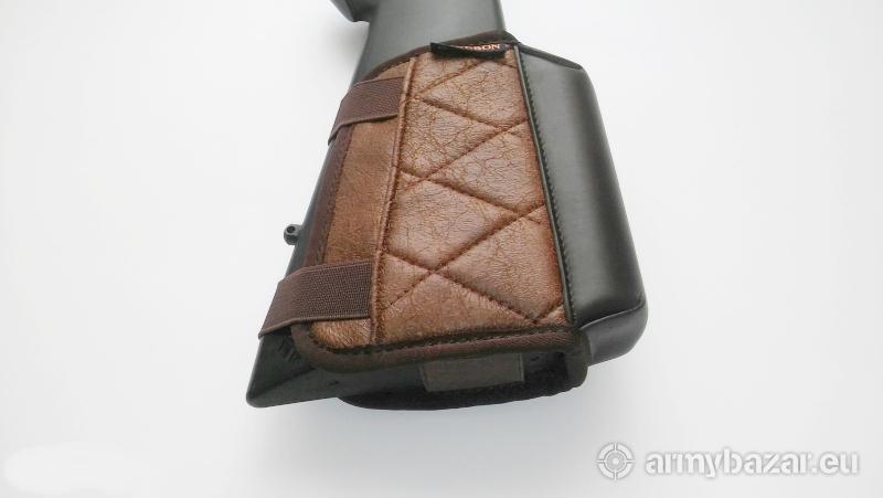 Opis: NOWA poduszka policzkowa VINTAGE, baka na kolbę do broni strzeleckiej, wiatrówki, itp. Wykonane z pikowanego materiału oraz skóry syntetycznej w kolorze brązowym. IDEALNA do celowania przy pomocy lunet oraz celowników optycznych. Podnosi linię celowania o 3cm. Łatwy i szybki montaż na napy. ROZMIAR uniwersalny, regulowany. Środek ogumowany zapewniający dobrą przyczepność do kolby, nie przesuwa się po niej. Z prawej strony uchwyt na 8 nabojów. WERSJA DLA STRZELCÓW PRAWORĘCZNYCH. DANE TECHNICZNE: Wykonanie: skóra syntetyczna + materiał Długość: 13 cm Wysokość: 3 cm Waga: 127 g.