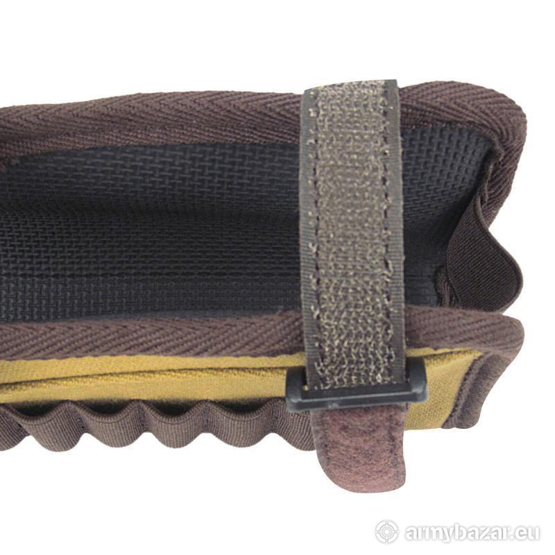 Opis: Poduszka policzkowa VINTAGE, baka na kolbę do broni strzeleckiej, wiatrówki, itp. Wykonane z pikowanego materiału oraz skóry syntetycznej w kolorze brązowym. IDEALNA do celowania przy pomocy lunet oraz celowników optycznych. Podnosi linię celowania o 3cm. Łatwy i szybki montaż na rzepy. ROZMIAR uniwersalny, regulowany. Środek ogumowany zapewniający dobrą przyczepność do kolby, nie przesuwa się po niej. Z prawej strony uchwyt na 8 nabojów. WERSJA DLA STRZELCÓW PRAWORĘCZNYCH. DANE TECHNICZNE: Wykonanie: skóra syntetyczna + materiał Długość: 13 cm Wysokość: 3 cm Waga: 127 g.