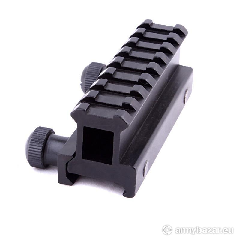 Opis: PODWYŻSZENIE szyny montażowej RIS / OPTYKI 22 mm. Wytrzymały i stabilny montaż podwyższający umożliwia zamontowanie kolimatora lub innej optyki na szynę RIS 20 - 22 mm. Dzięki niemu możemy osadzić optykę na broni, wiatrówce czy replice ASG. Całość wykonana z lekkiego a zarazem wytrzymałego i odpornego aluminium lotniczego, malowanego na kolor czarny. Montaż skręcany jest za pomocą dwóch śrub dociskanych ręcznie. Pasuje na standardowe szyny PICATINNY 20 - 22 mm. DŁUGOŚĆ: 85 mm WYSOKOŚĆ: 31 mm WAGA: 124 g
