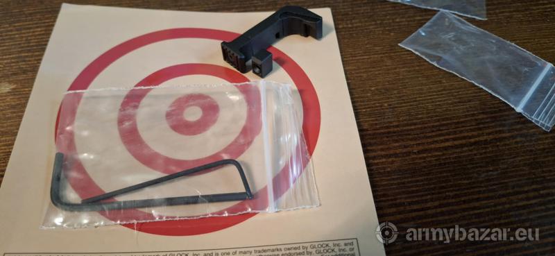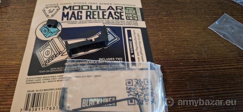 Opis: Powiększony zwalniacz magazynka Glock 1-3 Strike Industries. Nowy, raz założony, nie strzelany. Zbyt sportowy, wróciłem do mniejszego Ghosta.
