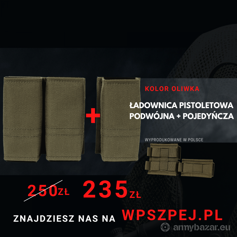 Opis: SZYBKA ŁADOWNICA PISTOLETOWA Ładownica przeznaczona na magazynki do pistoletów na amunicję 9×19 Para. Ładownica otwarta, zapewniająca szybkie dobycie magazynka. Hybrydowe i zarazem uniwersalne rozwiązanie utrzymuje magazynek wewnątrz ładownicy poprzez specjalną elastyczną wkładkę, która umieszczona jest wewnątrz ładownicy. „Kluczem do sukcesu” jest temperatura i sposób gięcia wkładki. Rozwiązanie takie pozwala pewnie trzymać magazynek wewnątrz ładownicy jednocześnie nie komplikując rozwiązania. System mocowania ładownicy oparty jest na przeplatanych taśmach (system MOLLE, PALS)