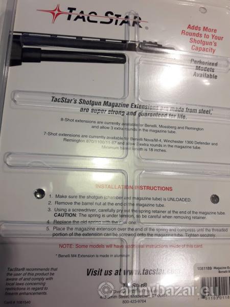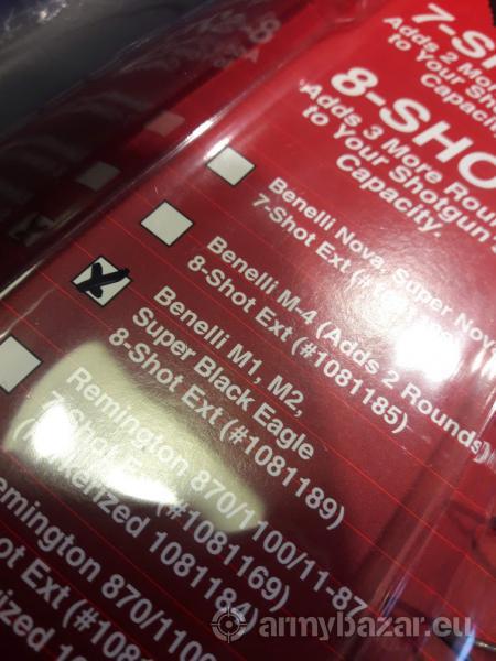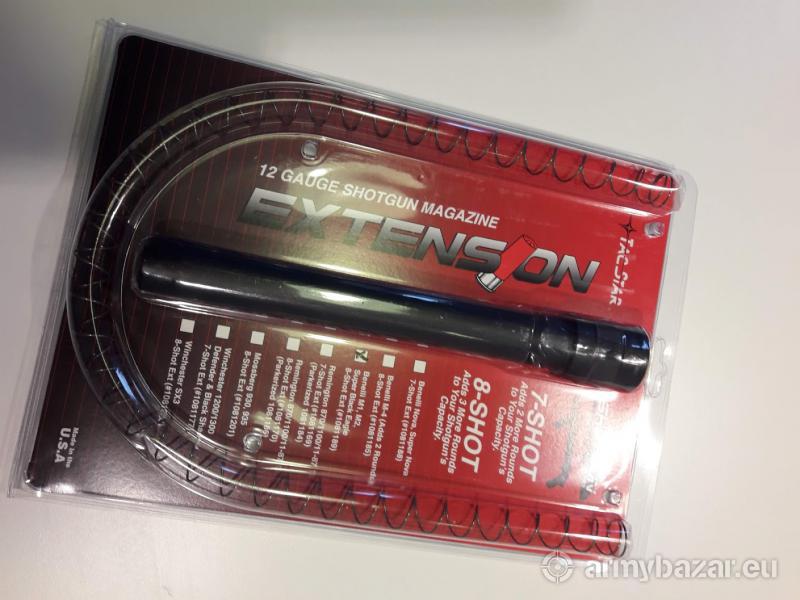 Opis: Sprzedam przedłużkę magazynka do Benelli M1, M2, Super Black Eagle. Teoretycznie powinna pasować również do starszych SL 121 z których wywodzą się M1 i M2. Wyprodukowana przez TacStar, firmę należącą do Lyman (ci od pras do elaboracji). Przedłużka zwiększa pojemność magazynka rurowego do 8 nabojów. Wykonana jest ze stali Cr-Mo. W zestawie dłuższa sprężyna. Zestaw nowy. Z okazji porządków świątecznych dorzucam nakładkę na chwyt pistoletowy od Hogue. Takiej przedłużki TacStar używam od lat w Benelli Supernova bez jakichkolwiek problemów. Ponieważ są relatywnie krótkie i z dobrej stali można darować sobie dodatkowe klamry spinające z lufą.