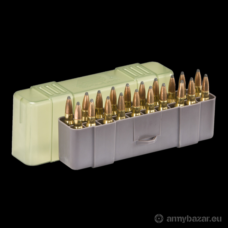 Opis: Plastikowe pudełko na 20 szt amunicji do pistoletu / rewolweru. Kal. .30-06, 7mm Mag, .25-06 Rem, .270, .280 Rem, .338 Win. Mag, .340 Wby. Mag