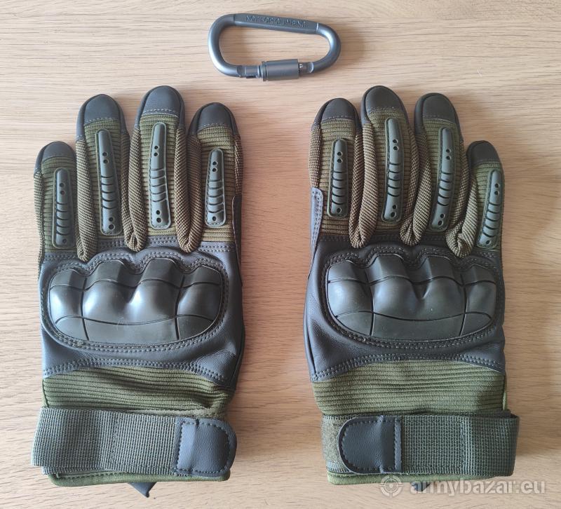 Opis: Nowe rękawice taktyczne. Posiadają właściwości: oddychające, ochronne, antypoślizgowe. Dostępny rozmiar: S, M, L, XL. Rękawice posiadają: - regulowaną taśmę na rzep do zapinania na nadgarstku, - wieszak pomocny przy zakładaniu i wieszaniu, - gumowe ochronniki na kostki, - wywietrzniki, - dodatkowy materiał na opuszkach palców i wewnętrznej stronie dłoni, - można w nich obsługiwać smartfona, W zestawie karabińczyk do zawieszenia rękawic przy pasie. Dostawa: Odbiór osobisty: Białystok, Paczkomat: 20zł, Paczkomat za pobraniem: 25zł. Propozycje i pytania proszę kierować na maila. Zapraszam do obejrzenia moich pozostałych ogłoszeń.