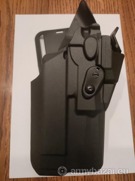 Opis: Kabura Safariland RDS, prawa z blokadą ALS. Kabura nie posiada uszkodzeń, w zestawie wymienne osłony kolimatora. Kabura użyta kilka razy na strzelnicy.