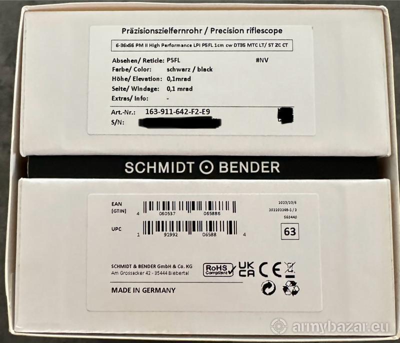 Opis: Na sprzedaż luneta Schmidt & Bender 6-36x56 PM II High Performance z siatką P5FL z podświetlanym krzyżem i wieżyczką DT35 MTC LT/ST ZC CT. Luneta nie posiada żadnych śladów użytkowania, okular ani obiektyw nie były nigdy przecierane (ani nawet dotykane) - stan: jak nowy ze sklepowej półki. W zestawie jest cały komplet jaki otrzymałem przy zakupie, tj. pudełko, instrukcja i ściereczka do okularów (bo raczej nie używałbym jej do czyszczenia optyki). Zakupiona w czerwcu 2023 roku. Link do strony producenta: https://www.schmidtundbender.de/pl/nowo%C5%9Bci/6-36x56-pm-ii-high-performance.html