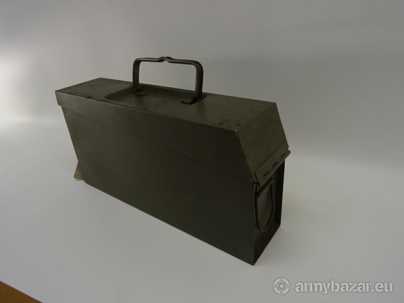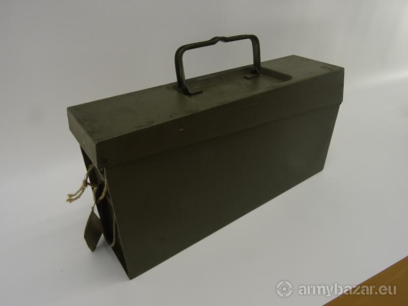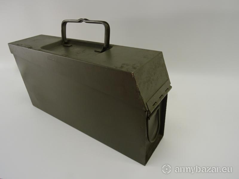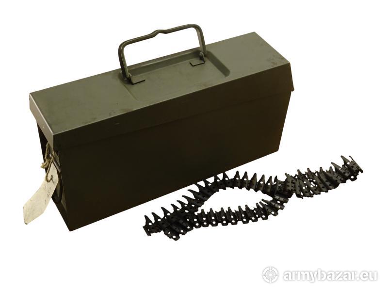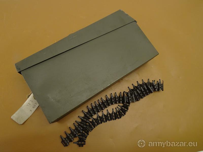 Opis: Oryginalna skrzynka na amunicię MG, MG3, MG53, MG42, i pochodnych + taśma amunicyjna odcinek 50 sztuk Oryginalna niemiecka skrzynka do wojskowej broni MG3, pasuje również do wszystkich pochodnych MG Stan używany widoczny na zdjęciach, posiadają zabrudzenia oraz delikatne ślady rdzy Cena dotyczy 1-sztuki skrzynki + 1-odcinek taśmy amunicyjnej 50-sztuk Numer katalogowy X2211