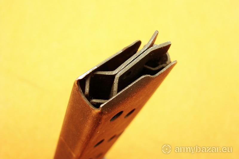 Opis: Przedmiotem ogłoszenia jest oryginalny, 8-mio nabojowy magazynek do amerykańskiego pistoletu SMITH WESSON MOD. 39 i pochodnych kal. 9x19 mm Parabellum Luger. Magazynek już kolekcjonerski od wczesnych pistoletów produkowanych koniec lat 60-tych ubiegłego wieku, tzw. steel x folower. Stan widoczny na zdjęciach, sprzedaję prezentowany egzemplarz. Cena 400 zł, wysłka 18 zł paczkomat inPost lub 15 zł kurierem pocztex48. Nie wysyłam za pobraniem. (DI-67)