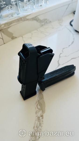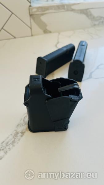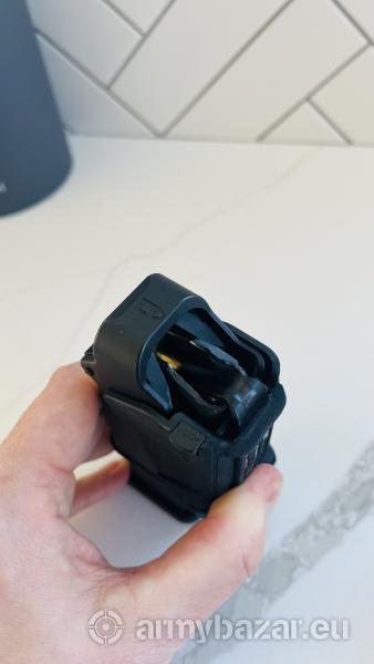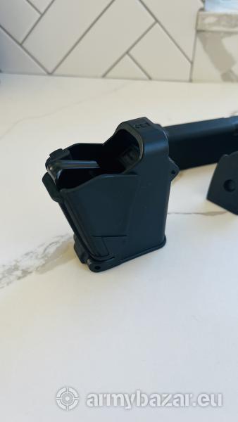 Opis: Cześć, sprzedam nową i nie używaną szybkoładowarkę do magazynków pistoletowych w kalibrze 9x19 oraz .45 ACP. Znacznie przyśpiesza ładowanie magazynków i odciąża palce. Pasuje do wszystkich magazynków. Możliwość wysyłki paczkomatem (10zł) lub przez OLX: https://www.olx.pl/d/oferta/szybkoladowarka-do-magazynkow-pistoletowych-9mm-CID4042-ID18KQ9Q.html