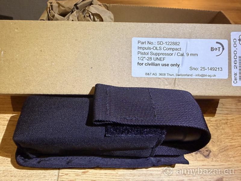 Opis: Sprzedam tłumik B&T IMPULS-OLS COMPACT 1/2-28 UNEF, wersja krótka, przebieg parędziesiąt strzałów, kupiony 03.02.2026.